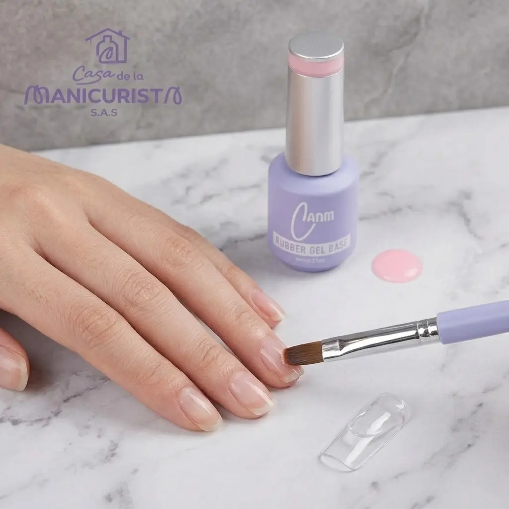 La base rubber 01 canm 8 ml está formulada para reforzar y nivelar la uña natural antes del esmaltado.