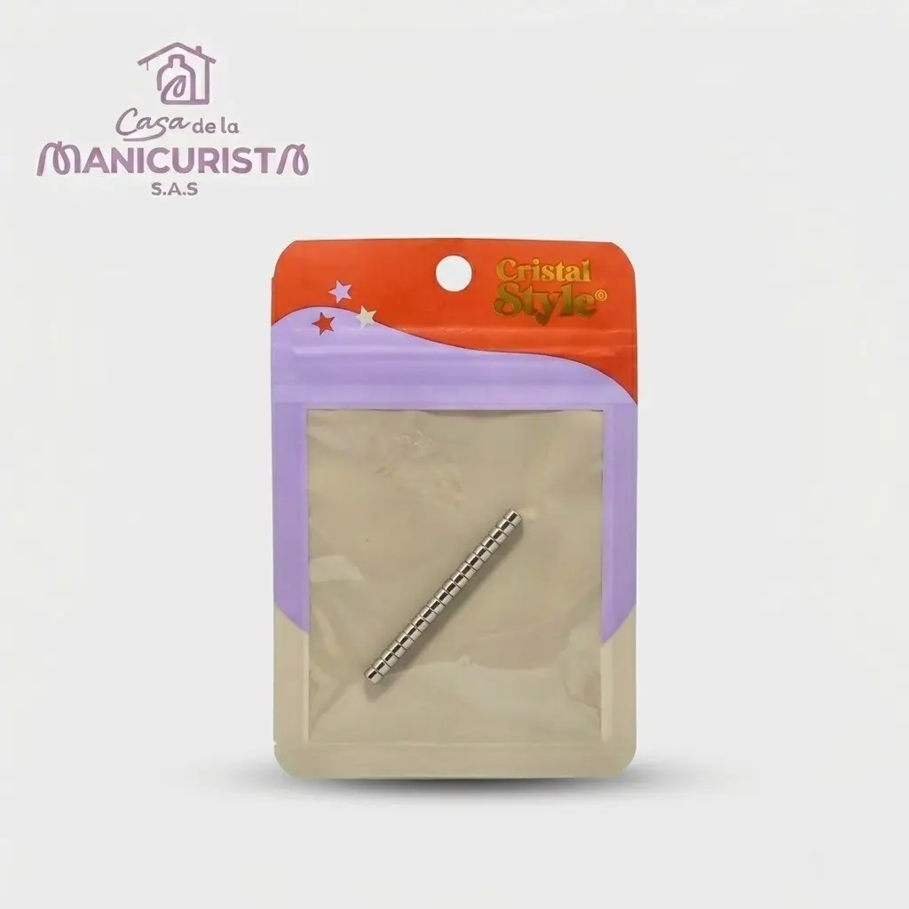 El iman redondo en piezas uñas es ideal para crear efectos magnéticos en esmaltes tipo cat eye. Permite diseñar acabados llamativos con diferentes formas.