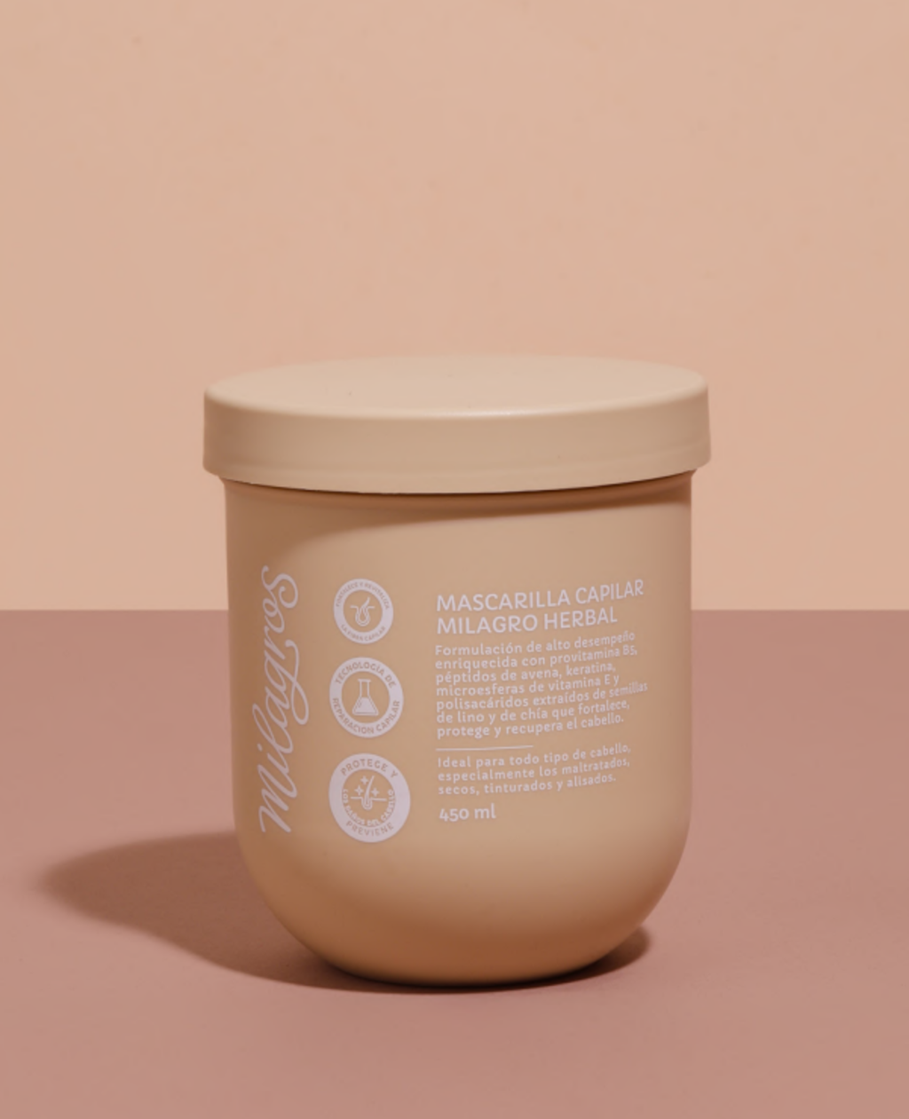 Mascarilla Milagro Herbal de alto desempeño, formulada con provitamina B5, péptidos, keratina, microesferas de vitamina E y polisacáridos de lino y chía. Su fórmula fortalece la fibra capilar, protege el cabello y ayuda a recuperar el daño causado por procesos químicos y agresiones externas. Aporta nutrición profunda, mayor resistencia, suavidad y un aspecto saludable desde la primera aplicación.